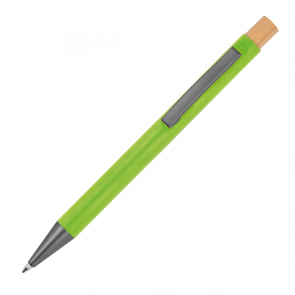 Długopis metalowy wykonany z aluminium pochodzącego z recyklingu to elegancki i praktyczny wybór na co dzień. Jego korpus wyróżnia się trwałością, a bambusowy przycisk dodaje naturalnego akcentu. Metalowy klips zapewnia wygodne przypięcie do notesu lub kieszeni, a wkład piszący na niebiesko gwarantuje płynność i komfort pisania.To połączenie klasyki i ekologicznych materiałów sprawia, że długopis doskonale sprawdzi się zarówno w biurze, jak i w codziennym użytkowaniu.