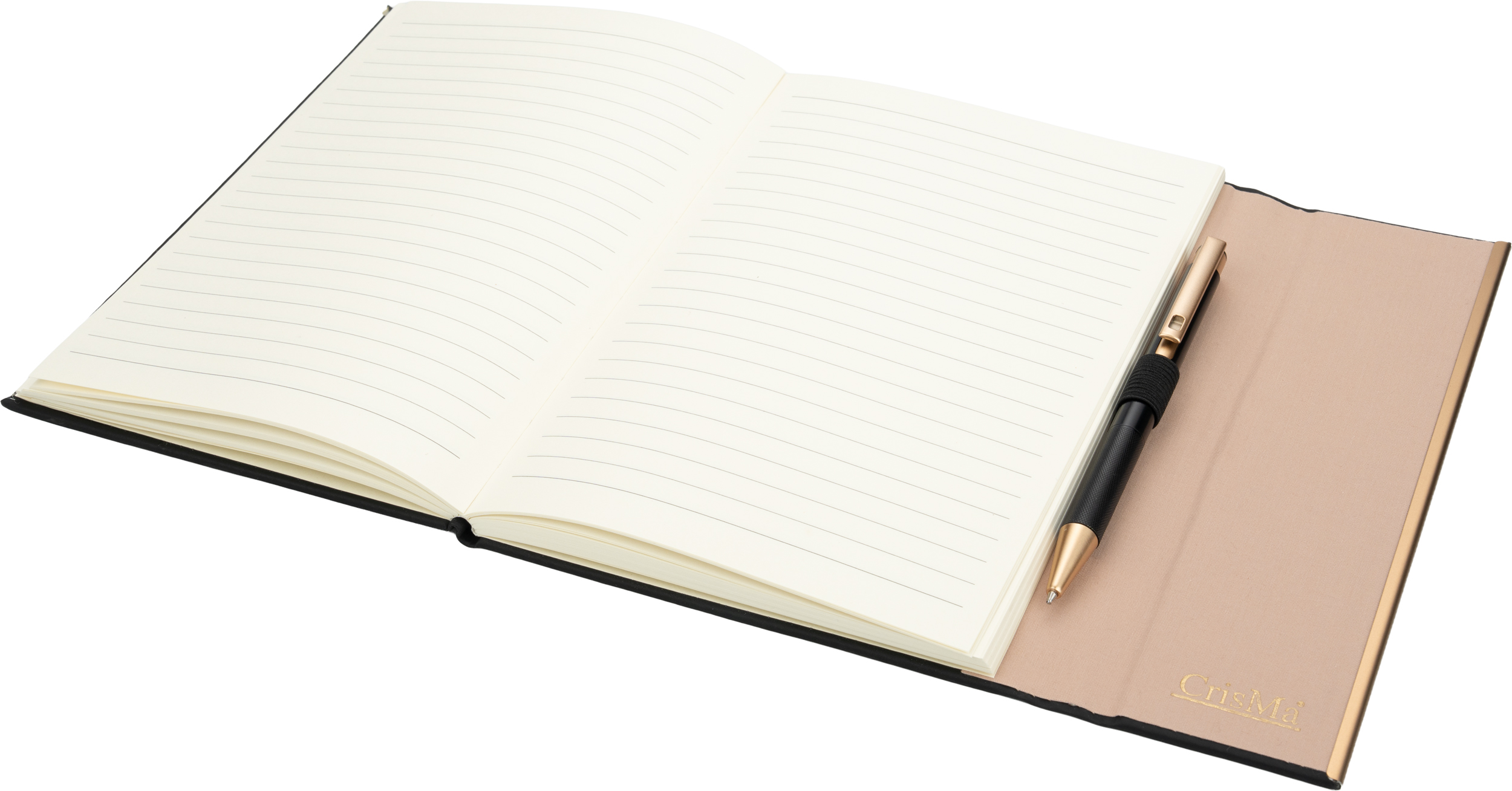 Notatnik A5 ze skóry z recyklingu, w linie z długopisem metalowym CrisMa MAGGIE / Czarny