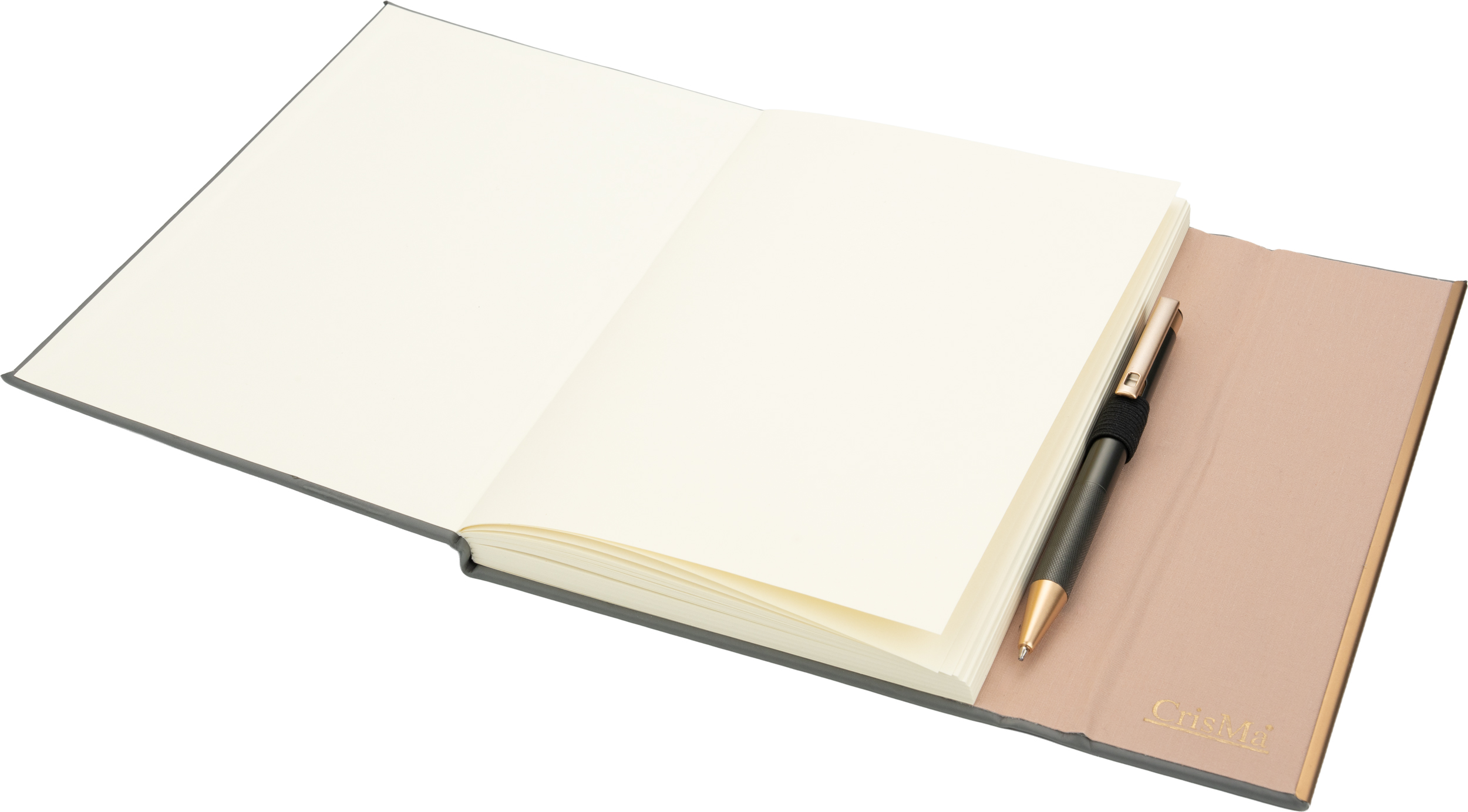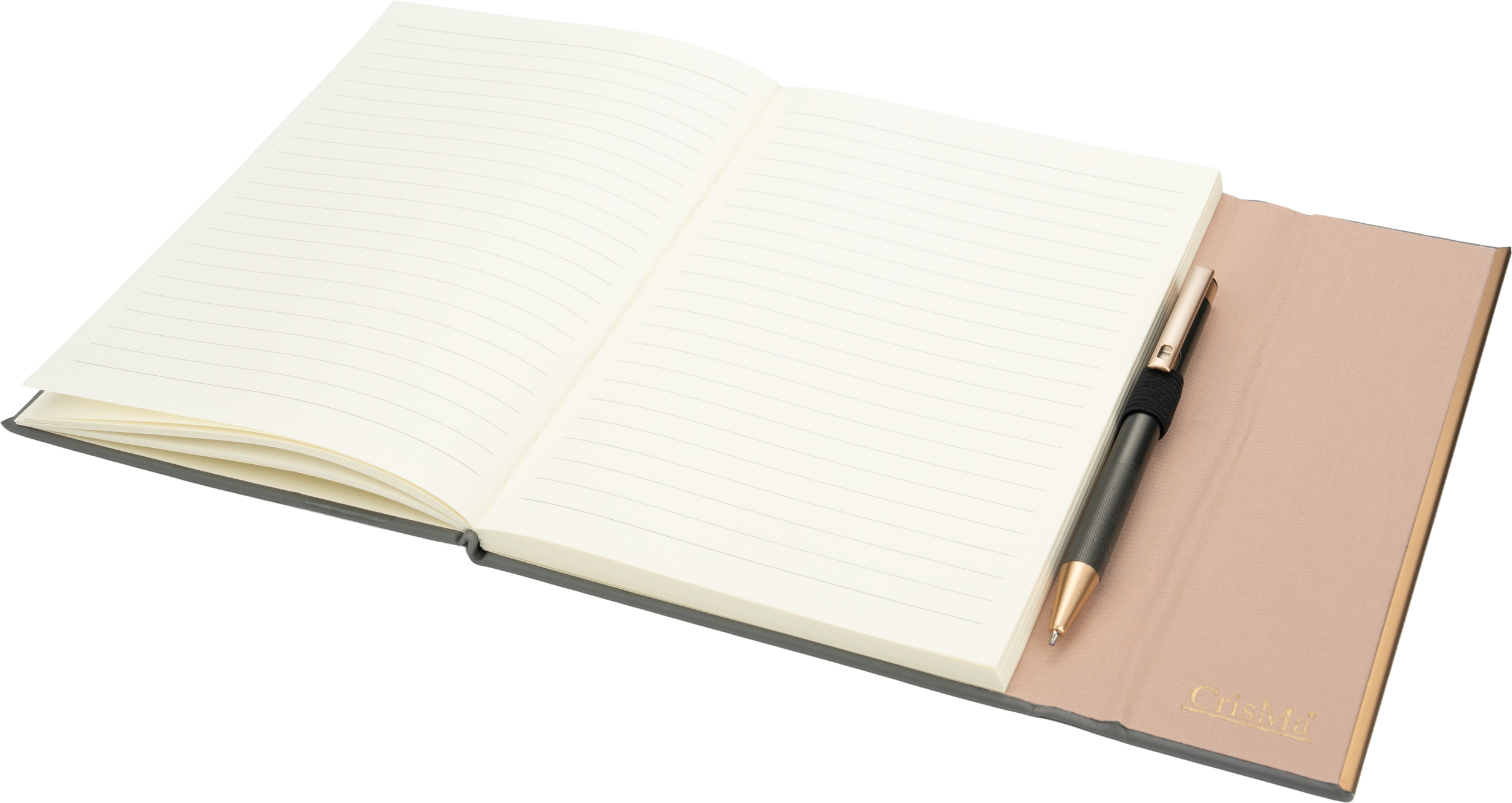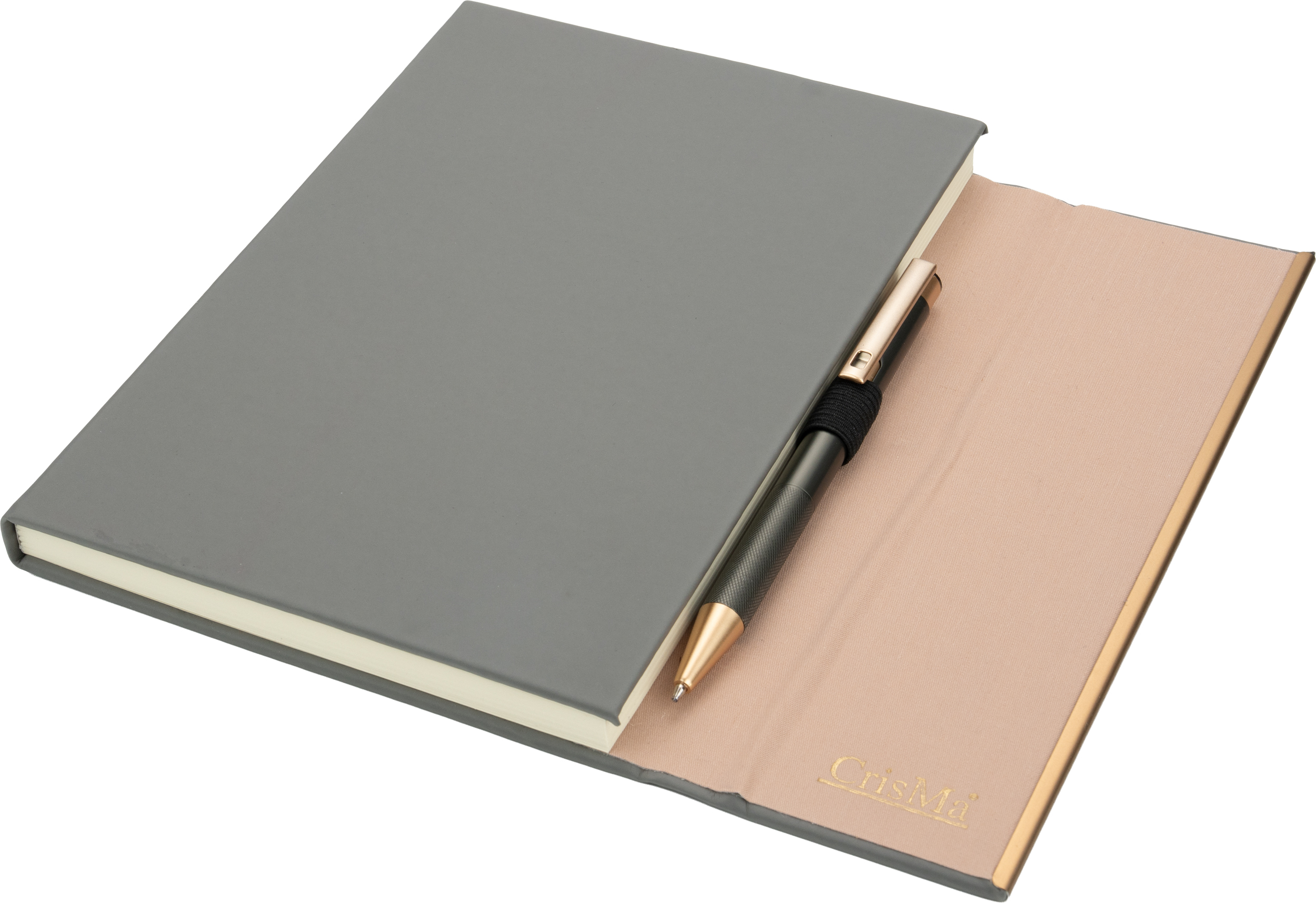 Notatnik A5 ze skóry z recyklingu, w linie z długopisem metalowym CrisMa MAGGIE / Ciemnoszary