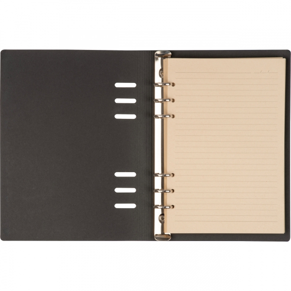 Kołonotatnik A5 to elegancki i funkcjonalny wybór na co dzień. Posiada okładkę wykonaną z wysokiej jakości materiału PU, który jest trwały i odporny na uszkodzenia. Wewnątrz znajduje się 100 kartek w linie, wykonanych z trzciny cukrowej, co sprawia, że jest to rozwiązanie przyjazne środowisku.Dodatkowo, kołonotatnik wyposażono w szlufkę na długopis, co zapewnia wygodny dostęp do pisaków w każdej chwili. Z jego pomocą z łatwością zapiszemy notatki, pomysły i ważne informacje. Idealny do użytku w biurze, szkole lub podczas codziennych spotkań.