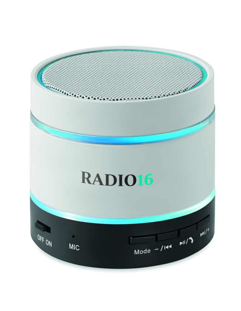 W zestawie znajdują się porty SD, kabel AUX/USB i bateria Li-lon 300 mAh. Głośnik bezprzewodowy bluetooth 2.1 z ABS wykończony jest światłem LED, które nadaje mu wyjątkowego charakteru.