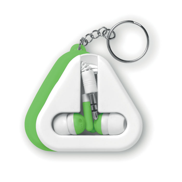 Słuchawki z PVC w silikonowym etui z ABS. Zawieszka do breloka. Długość kabla 100cm.