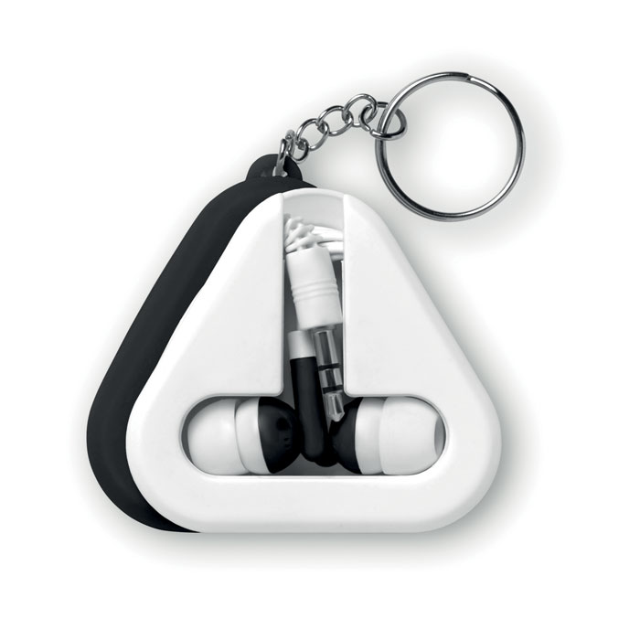 Słuchawki z PVC w silikonowym etui z ABS. Zawieszka do breloka. Długość kabla 100cm.