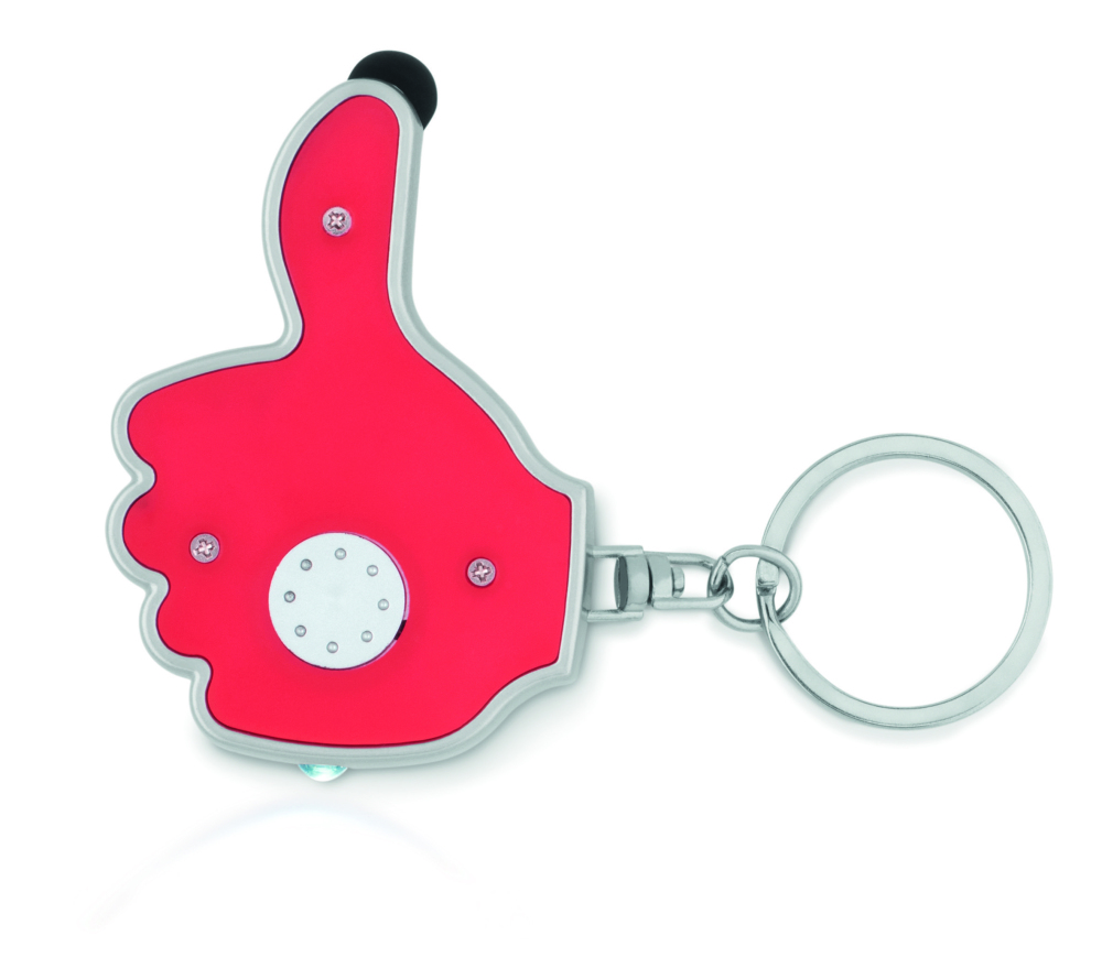 Brelok z końcówką do ekranów dotykowych oraz lampką LED. Baterie dołączone.