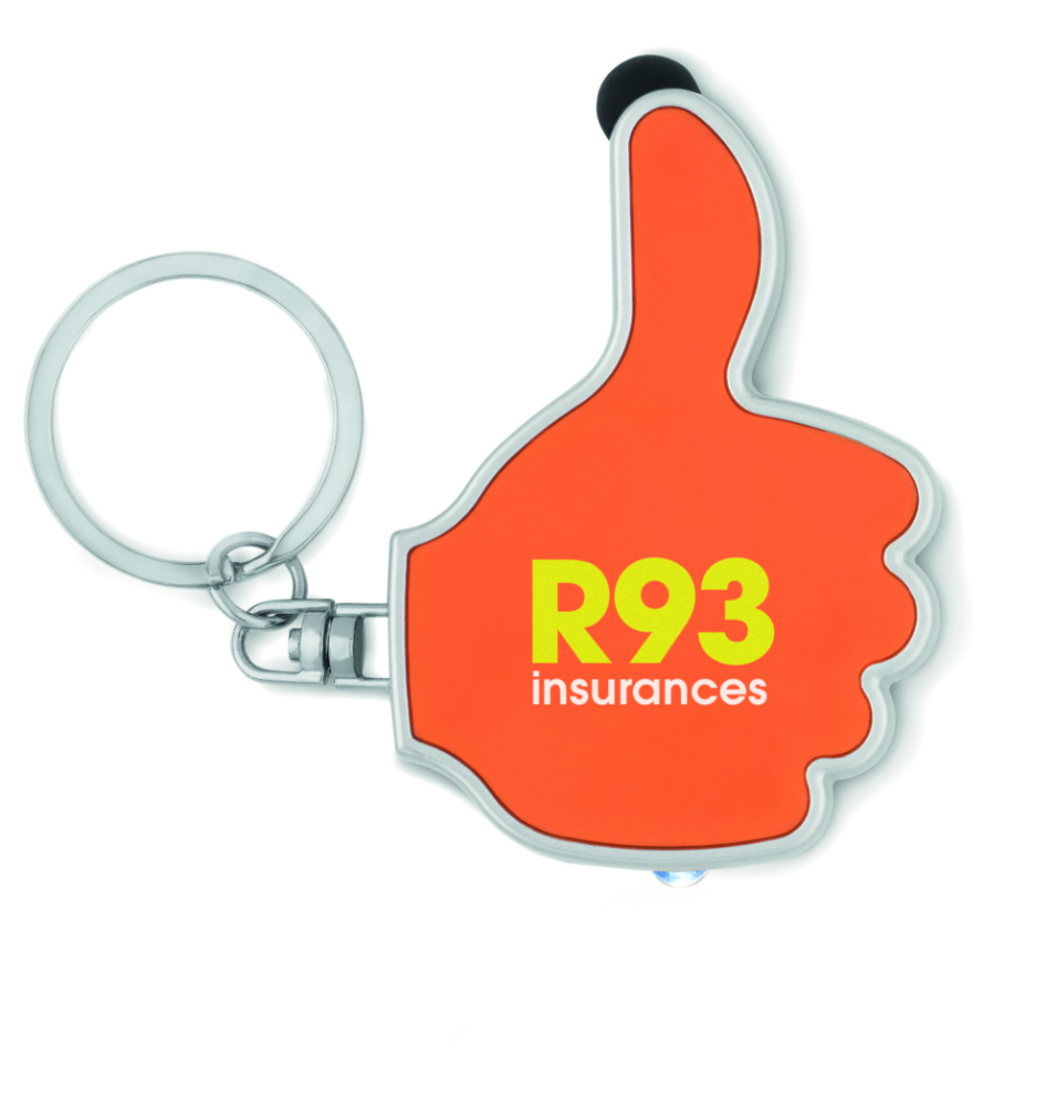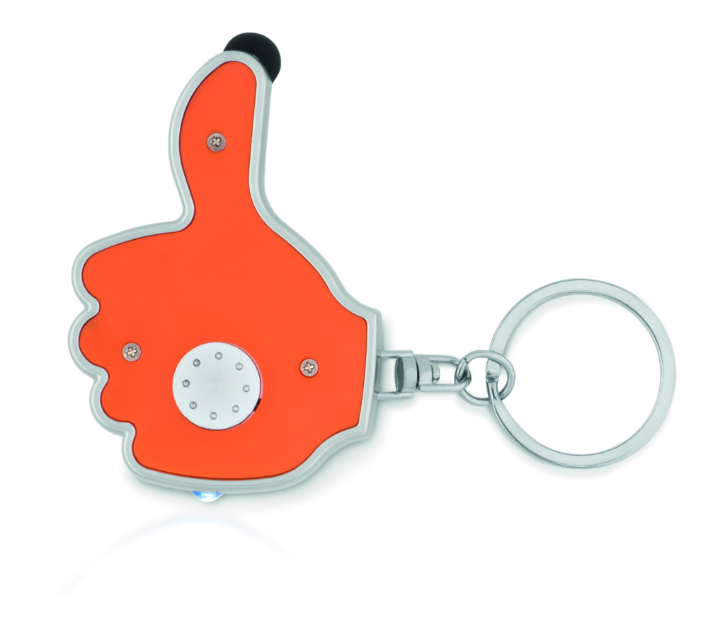 Brelok z końcówką do ekranów dotykowych oraz lampką LED. Baterie dołączone.