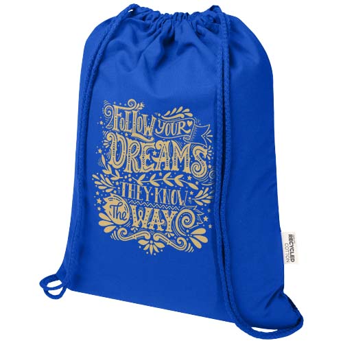 Oregon Blend torba ściągana sznurkiem z materiału materiału z recyklingu, 140 g/m², 5 l, posiadająca certyfikat GRS / Błękit królewski