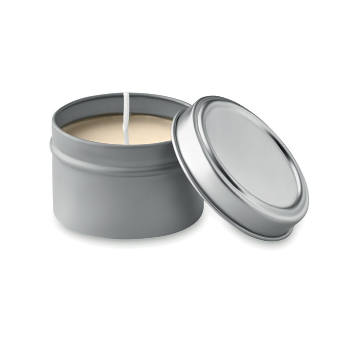 Mała świeca zapachowa w metalowej puszce. Drzewo sandałowe i wanilia.