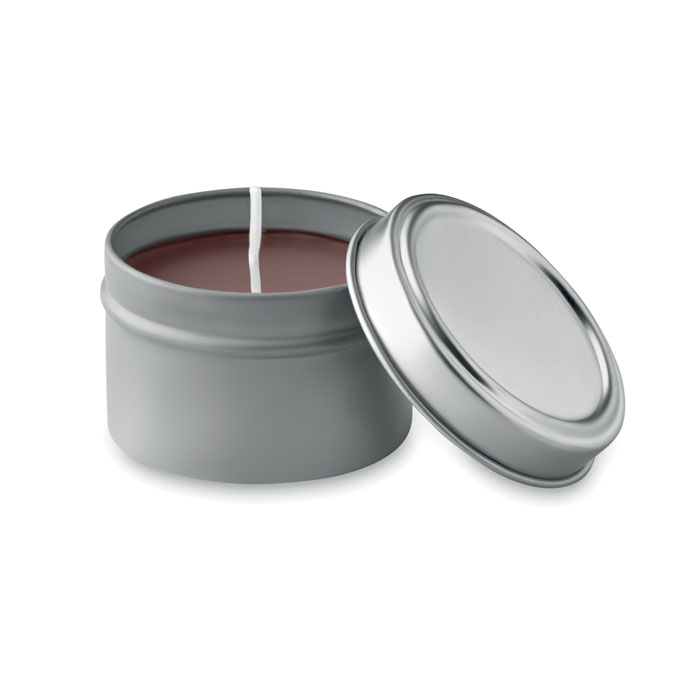 Mała świeca zapachowa w metalowej puszce. Drzewo sandałowe i wanilia.