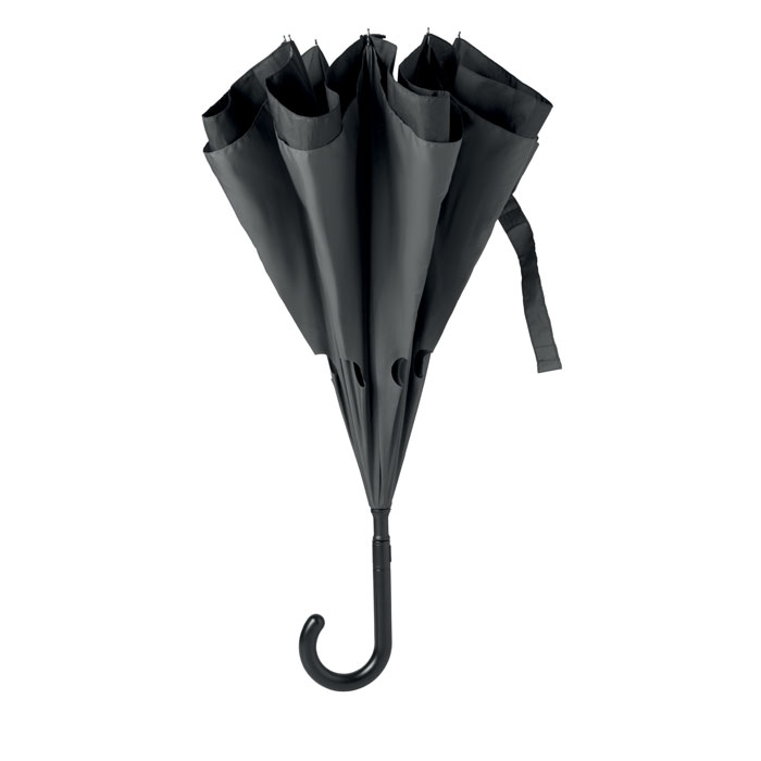 "Parasol 23"", otwierany odwrotnie, podwójna warstwa, żebra i trzon z włókna szklanego, materiał 190T pongee. Otwierany manualnie, składany automatycznie."