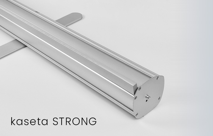 - Strong – dodatkowo wzmocniona od dołu i z tyłu kasetka ze sztywnego aluminium. Wsparta na dwóch, wykończonych tworzywem sztucznym - nóżkach stabilizujących. W zestawie trójdzielny maszt/maszty, górna listwa zaciskowa oraz torba transportowa z dodatkową wkładką.