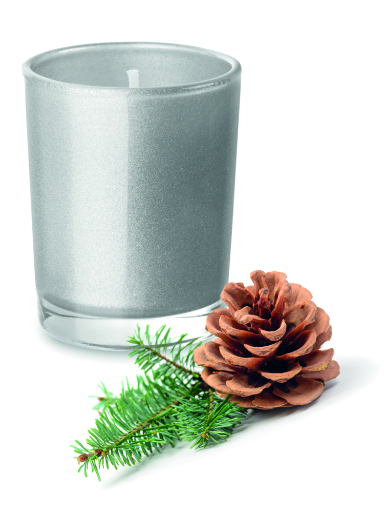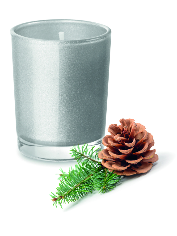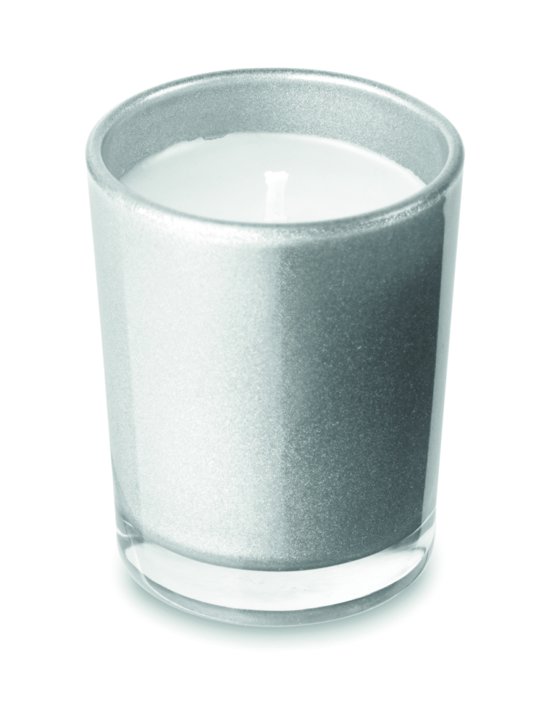 Zapachowa mała świeca w barwionym szklanym pojemniku.