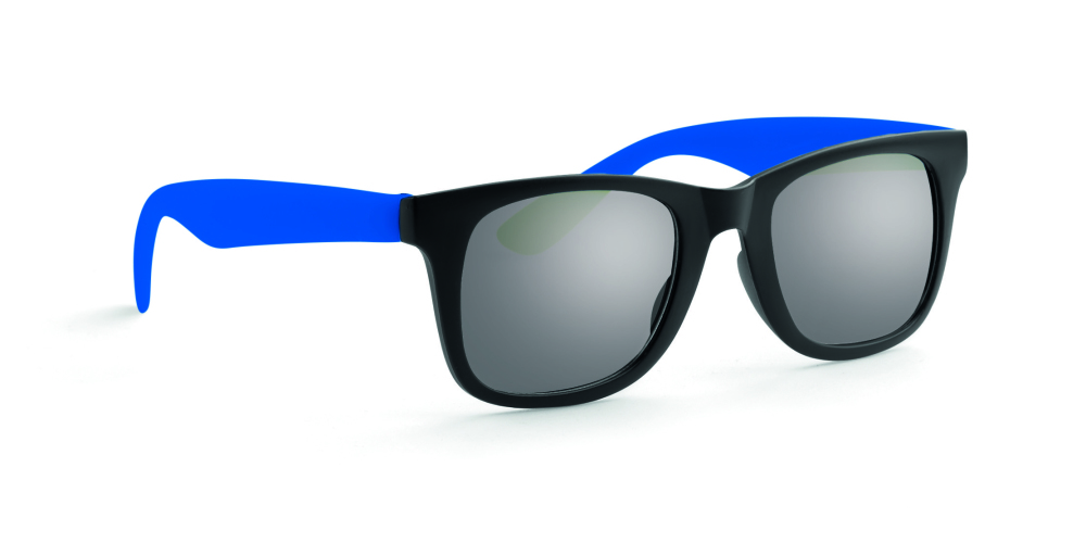 Klasyczne okulary przeciwsłoneczne z filtrem UV400 i kolorową ramką.