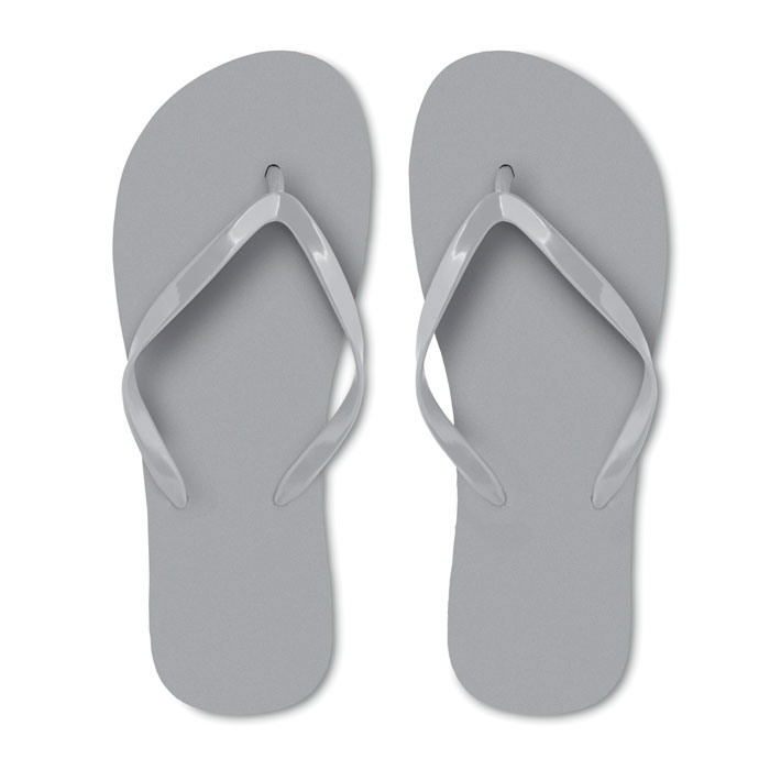 Klapki wykonane z polietylenu i paskiem z PVC, dostępne są w ośmiu kolorach: czarnym, czerwonym, granatowym, białym, szarym, pomarańczowym, fuksja oraz limonkowym.