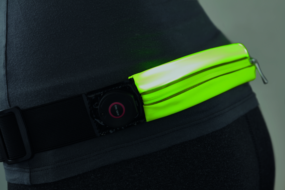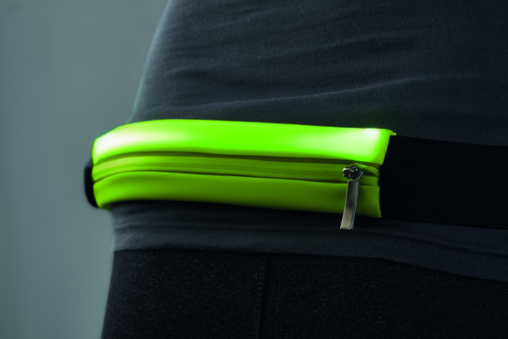 Regulowany pas do biegania z świecącymi diodami LED (3 tryby). Zapinany na zamek. Wodoodporny, spodnia warstwa z PU.
