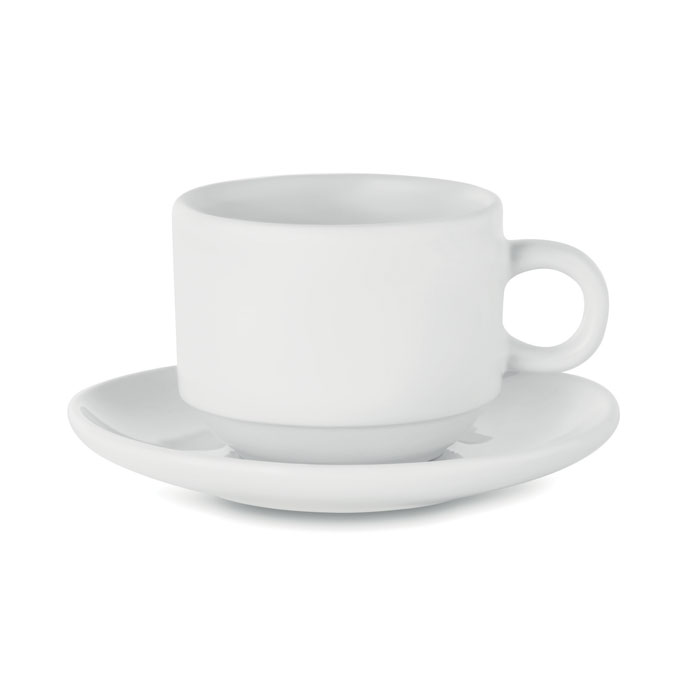 Filiżanka ze spodkiem do cappuccino, ze specjalną powłoką do sublimacji.