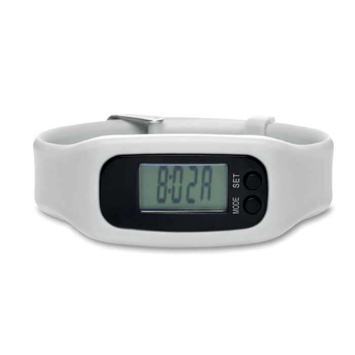 Krokomierz z paskiem. Zawiera licznik kroków, dystansu, czasu oraz spalonych kalorii. W zestawie 1 bateria AG10.
