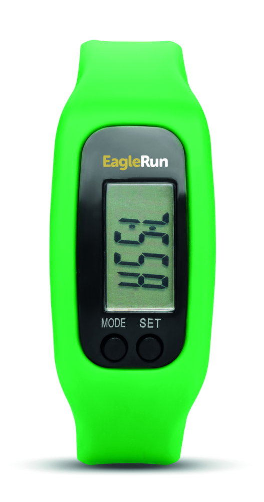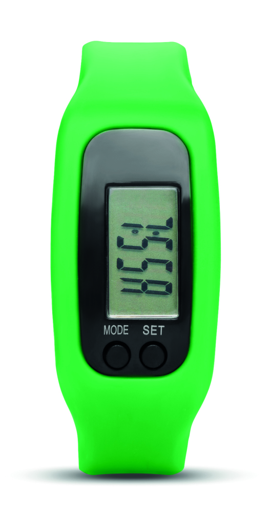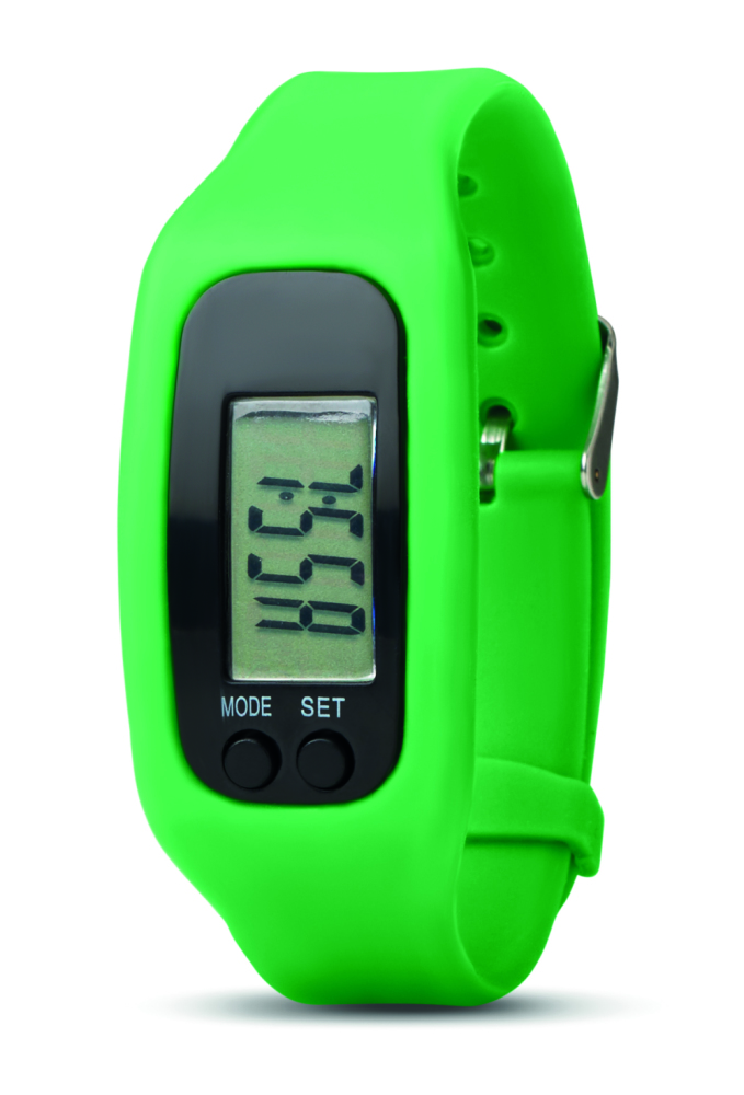 Krokomierz z paskiem. Zawiera licznik kroków, dystansu, czasu oraz spalonych kalorii. W zestawie 1 bateria AG10.