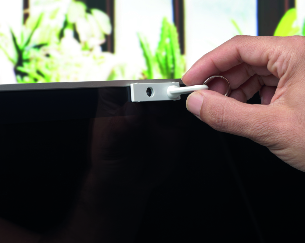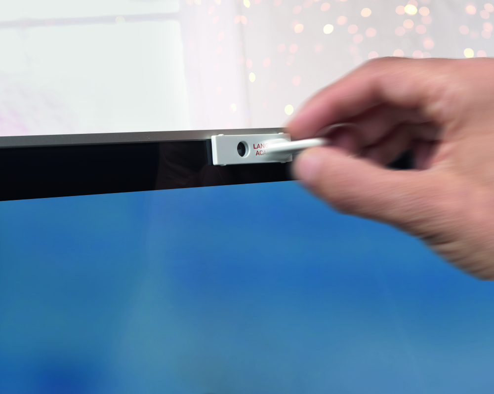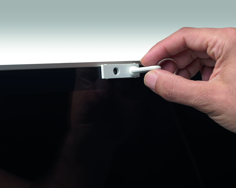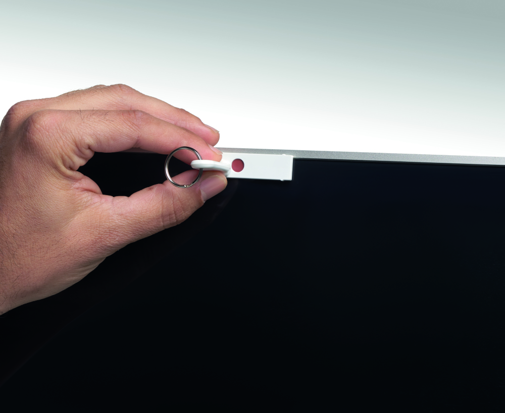 Samoprzylepna osłona na kamerę internetową z magnetycznym urządzeniem zapewniającym dodatkowe bezpieczeństwo.