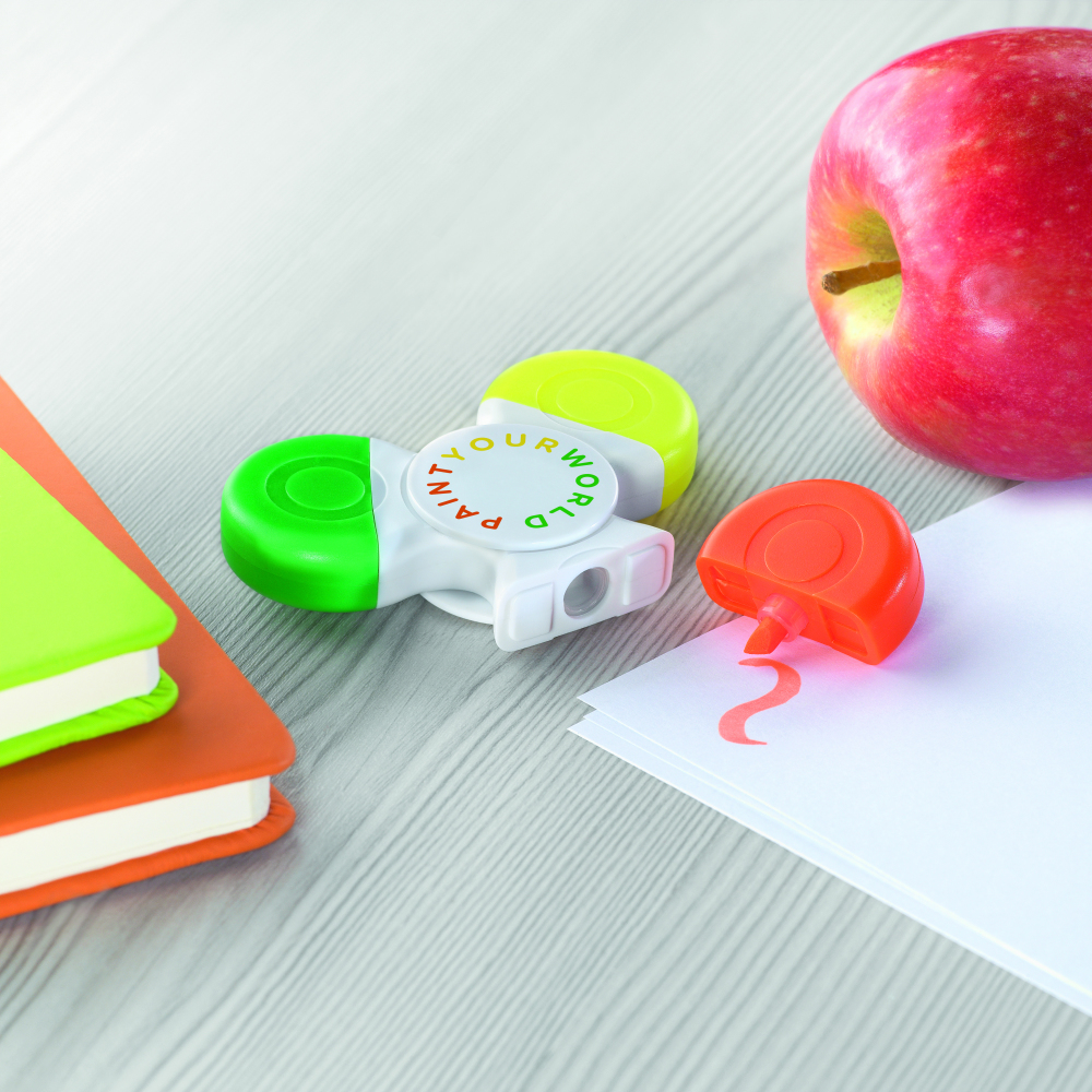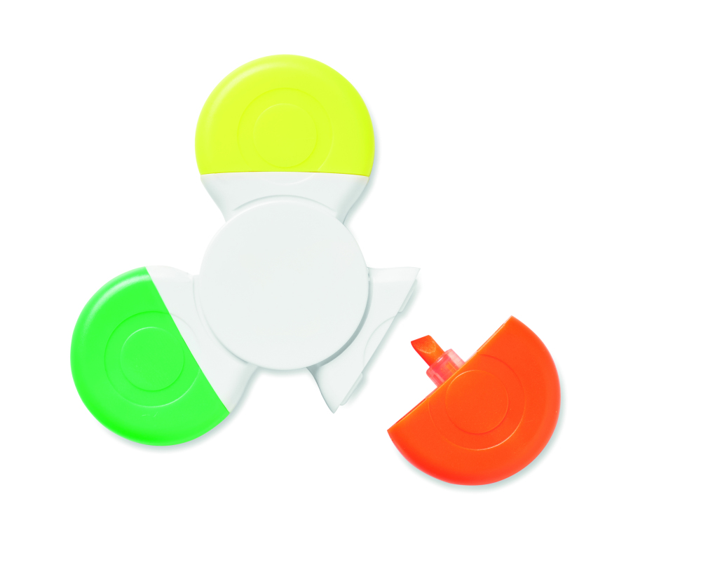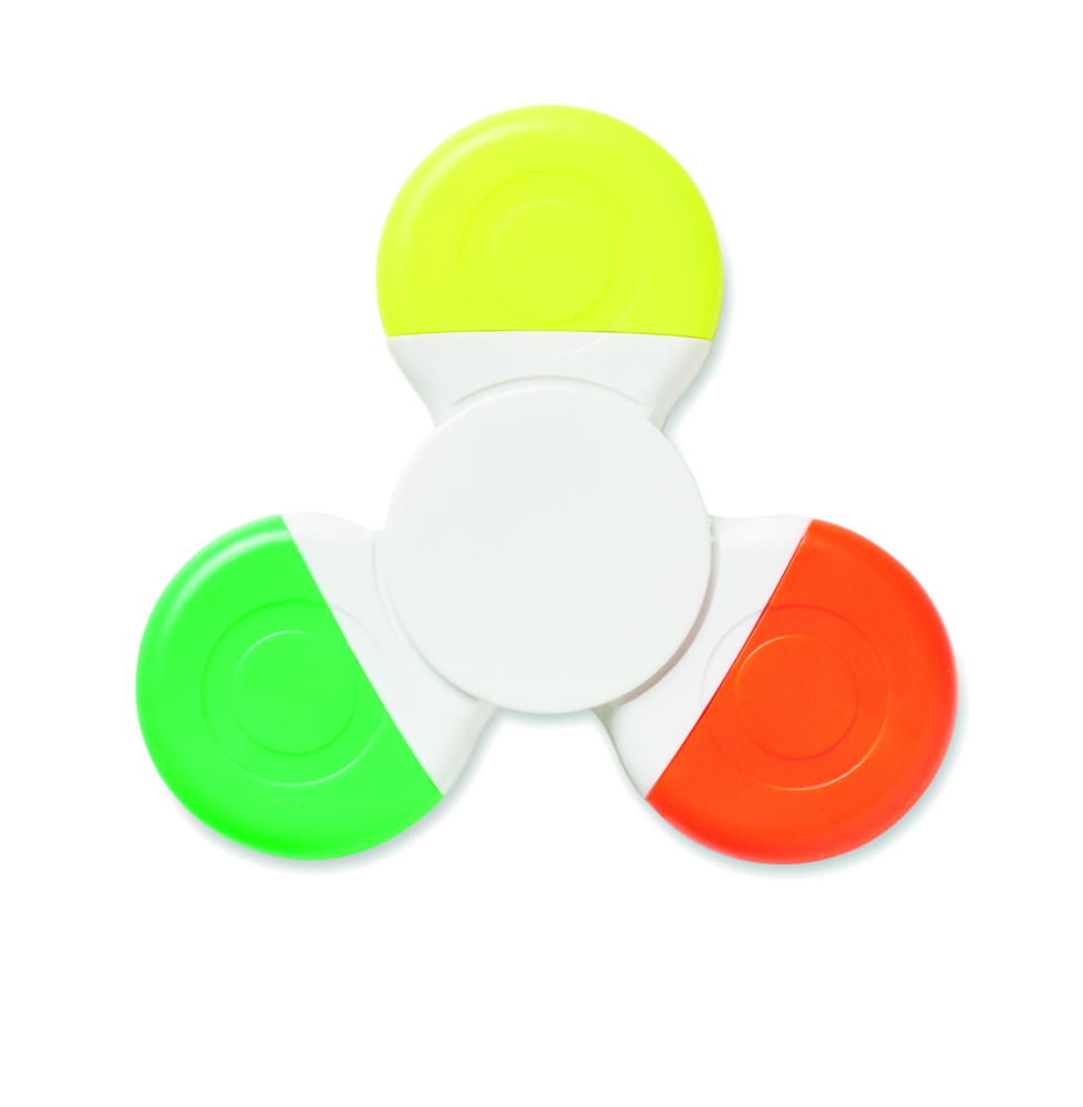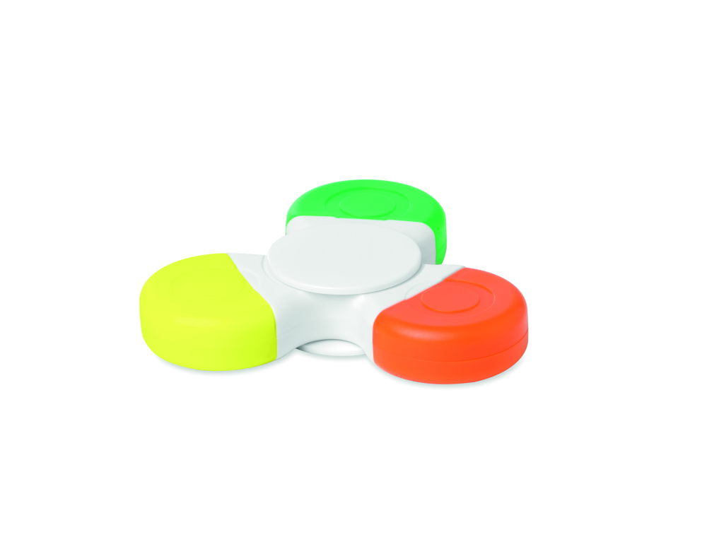 Spinner - produkt antystresowy z 3 zakreślaczami. Łączy zabawę spinnerem z przydatnością zakreślacza. Produkt spełnia europejską normę EN 71 CE, spełnia wszystkie wymogi w zakresie bezpieczeństwa dla zabawek.