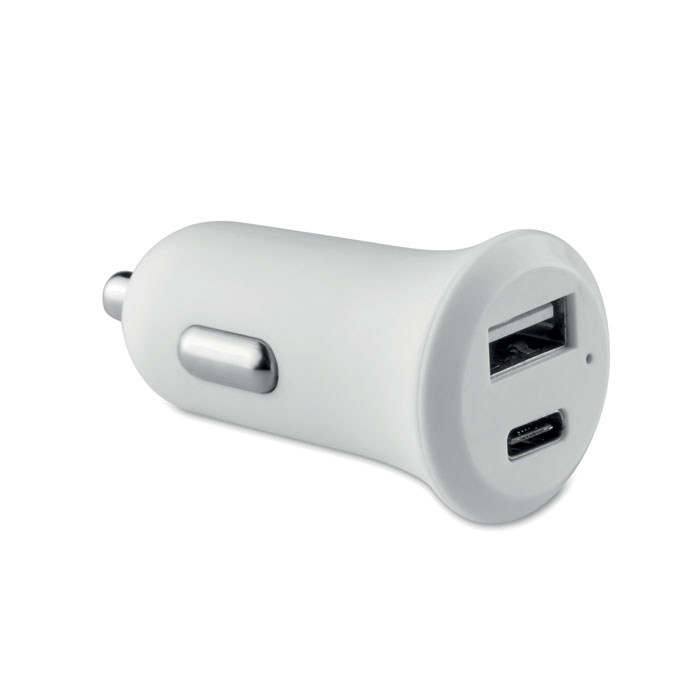 Ładowarka samochodowa wykonana z ABS z dwoma wyjściami USB i USB typu C.