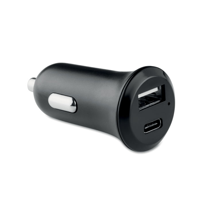 Ładowarka samochodowa wykonana z ABS z dwoma wyjściami USB i USB typu C.