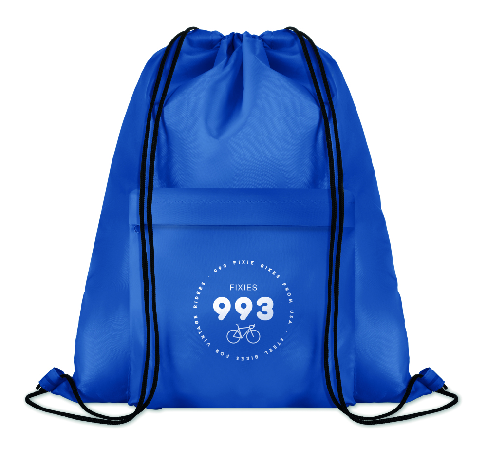 Duży worek/plecak z poliestru 210D, z przodu kieszonka na zamek.