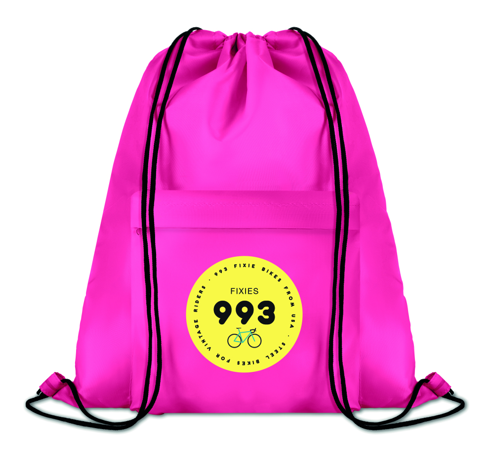 Duży worek/plecak z poliestru 210D, z przodu kieszonka na zamek.