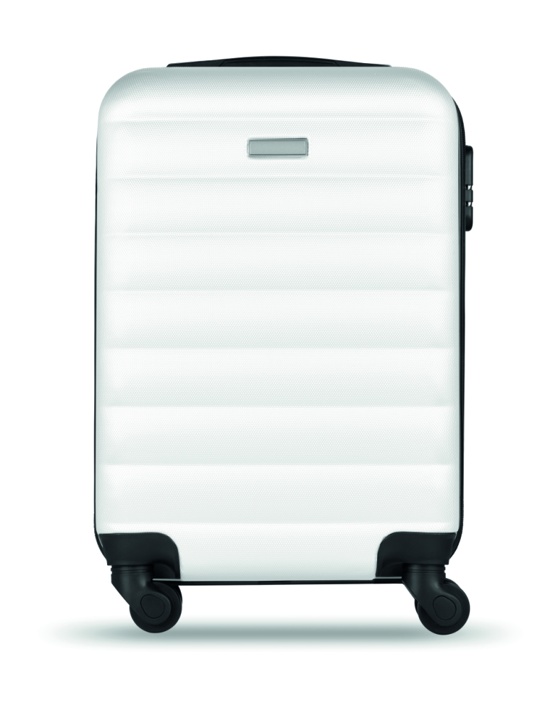 Walizka 20 cali z mocnego, twardego ABS, posiada 4 kółka obracane 360 stopni. W środku komora główna i mała boczna.