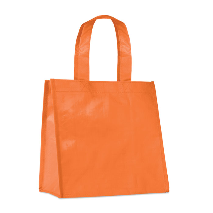 Mała torba z materiału PP woven z laminacją i krótkimi uchwytami. Gramatura 120g/m².