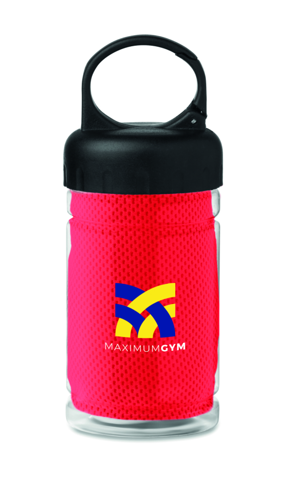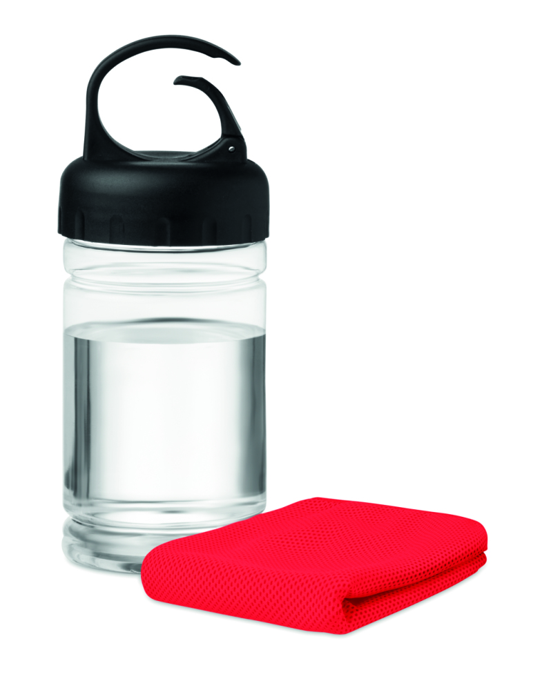 Butelka z trytanu ze sportowym ręcznikiem z mikrofibry.