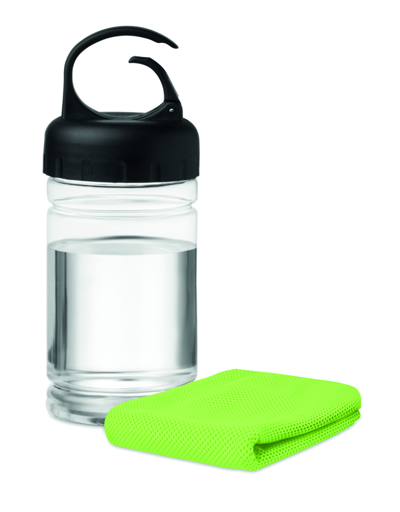 Butelka z trytanu ze sportowym ręcznikiem z mikrofibry.