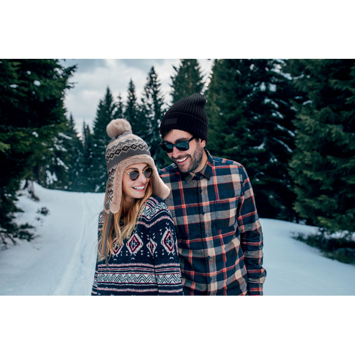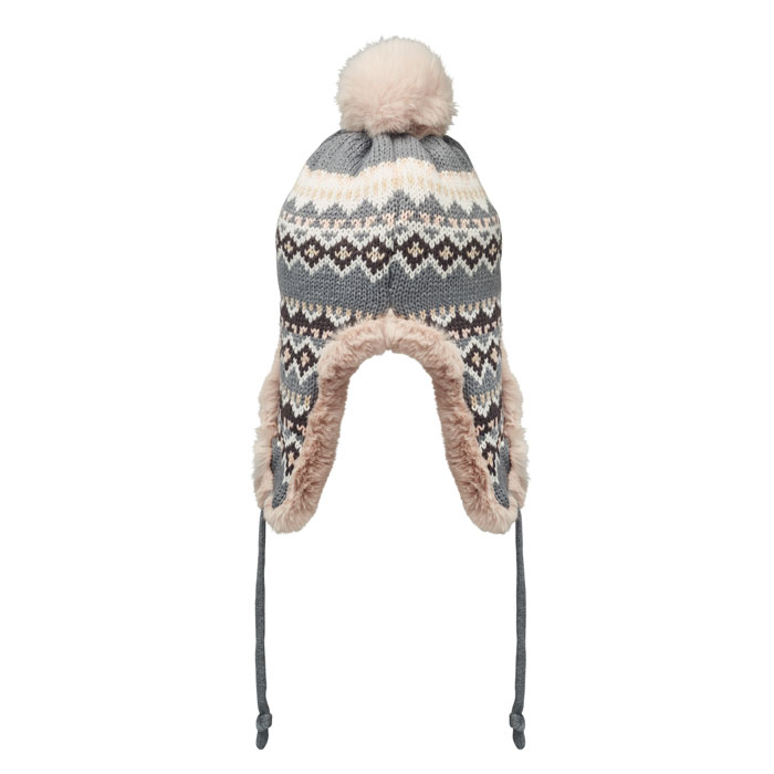 Dzianinowa czapka z nausznikami i pomponem z włókna akrylowego z poliestrową i polarową podszewką. Zawiera metkę do nadruku po jednej stronie. Rozmiar dla dorosłych.