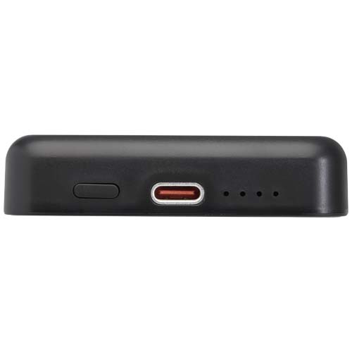 Acrab magnetyczny bezprzewodowy powerbank o pojemności 5000 mAh i mocy 15 W z technologią PD 20 W — wykonany z tworzyw sztycznych pochodzących z recyklingu. / Czarny