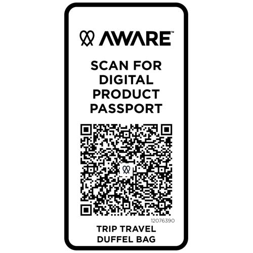 Torba podróżna Trip Aware™ wykonana z materiałów pochodzących z recyklingu to wszechstronny i pojemny towarzysz, idealny na krótkie wypady, w której z łatwością zmieścisz wszystkie niezbędne rzeczy. Wykonana z wytrzymałego poliestru 290D o splocie skośnym z miękkim dzianinowym spodem i podszewką RPET 210D/PU, jest praktyczna i wygodna. Główna komora zawiera dużą kieszeń zapinaną na suwak z miejscem na paszport, długopisy i wstążkę do kluczy, a także dwie wewnętrzne kieszenie wsuwane i dwa uchwyty na butelkę z wodą. Oddzielna dolna komora rozchyla się, co jest idealne do przechowywania butów lub oddzielnego sprzętu. Do każdej torby dołączona jest również zawieszka Aware™ pozwalająca użytkownikom prześledzić za pomocą kodu QR pochodzenie i ścieżkę produkcji, zwiększając przejrzystość łańcucha dostaw i wspierając silniejszy związek między produktem a jego procesem produkcyjnym. Pojemność: 42 litrów.