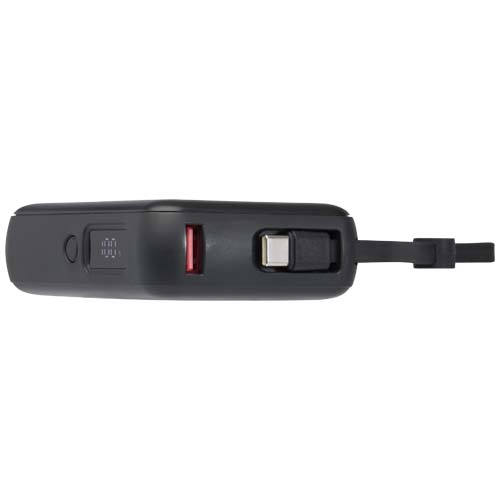 Acrux powerbank do tabletu o pojemności 10 000 mAh i mocy 35 W z wbudowanym kablem typu C - wykonany z tworzyw sztucznych pochodzących z recyklingu. / Czarny