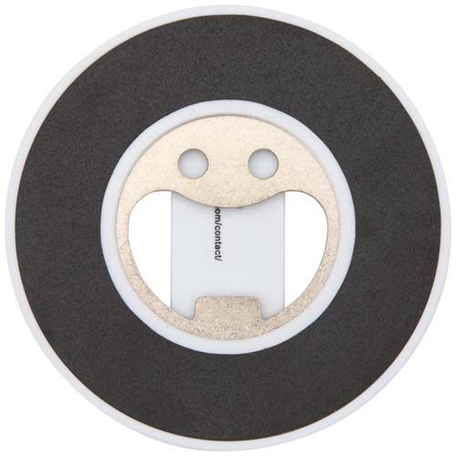 Ain podstawka na telefon z mocowaniem magnetycznym, z tworzyw sztucznych pochodzących z recyklingu z otwieraczem do butelek / Biały