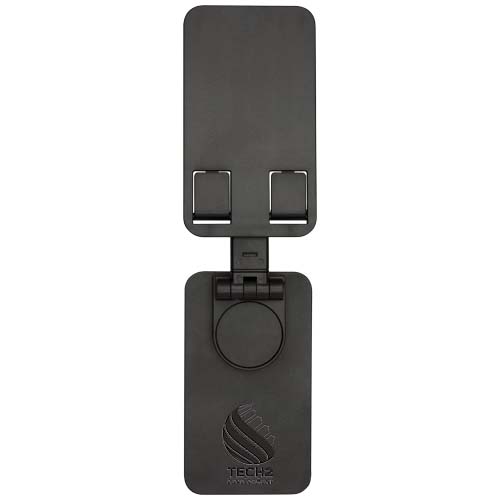 Alhena składany uchwyt na telefon z z tworzyw sztucznych pochodzących z recyklingu z metalową podstawką biurkową / Czarny