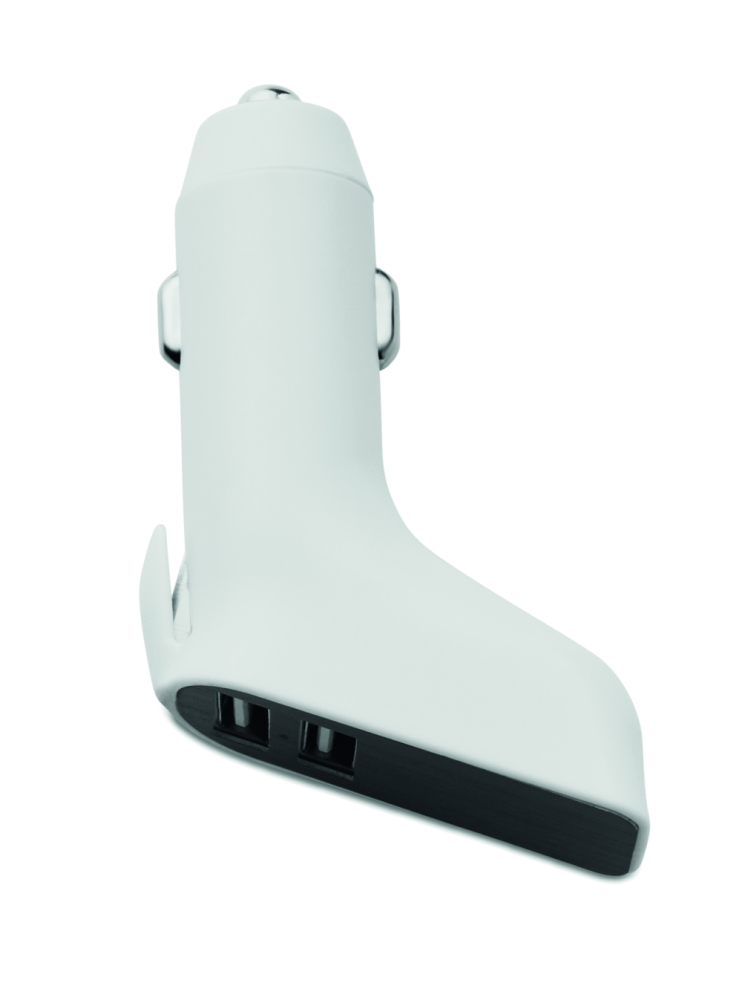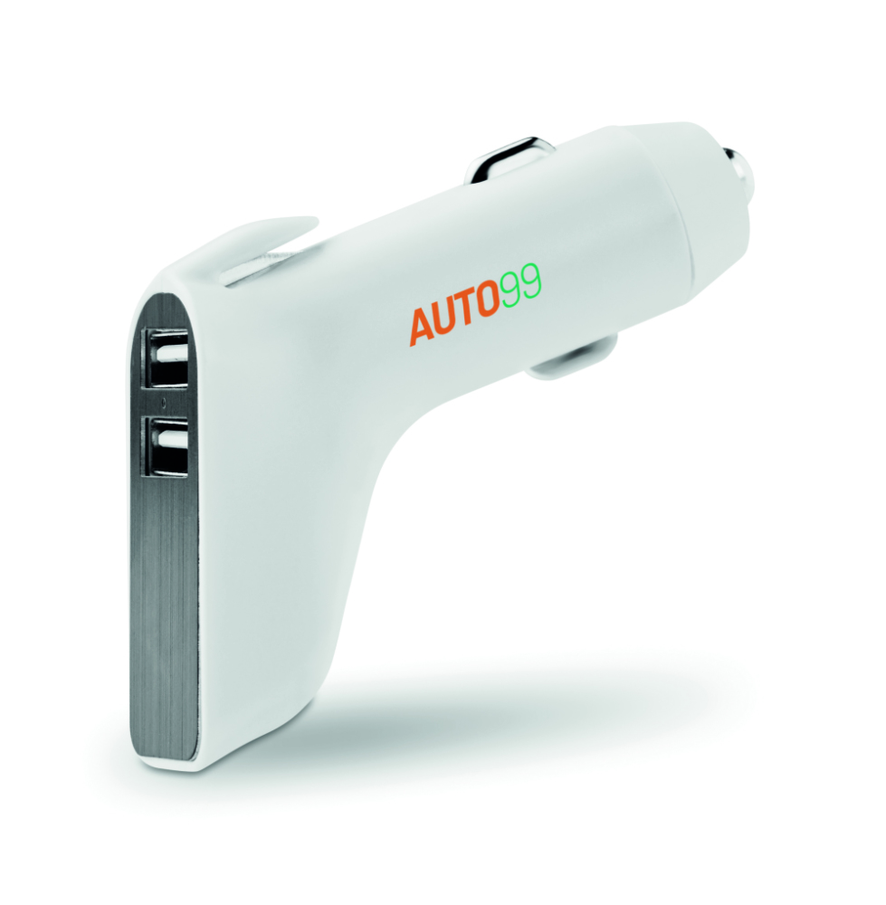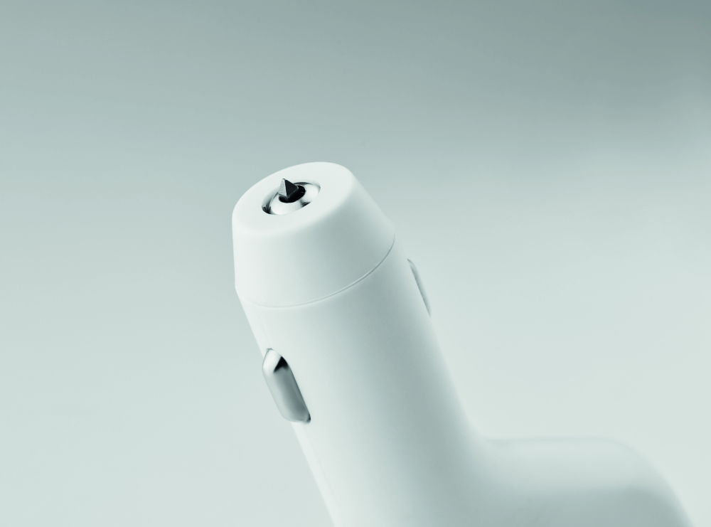 Ładowarka samochodowa z ABS z 2 portami i wbudowanym nożem do cięcia pasów bezpieczeństwa.