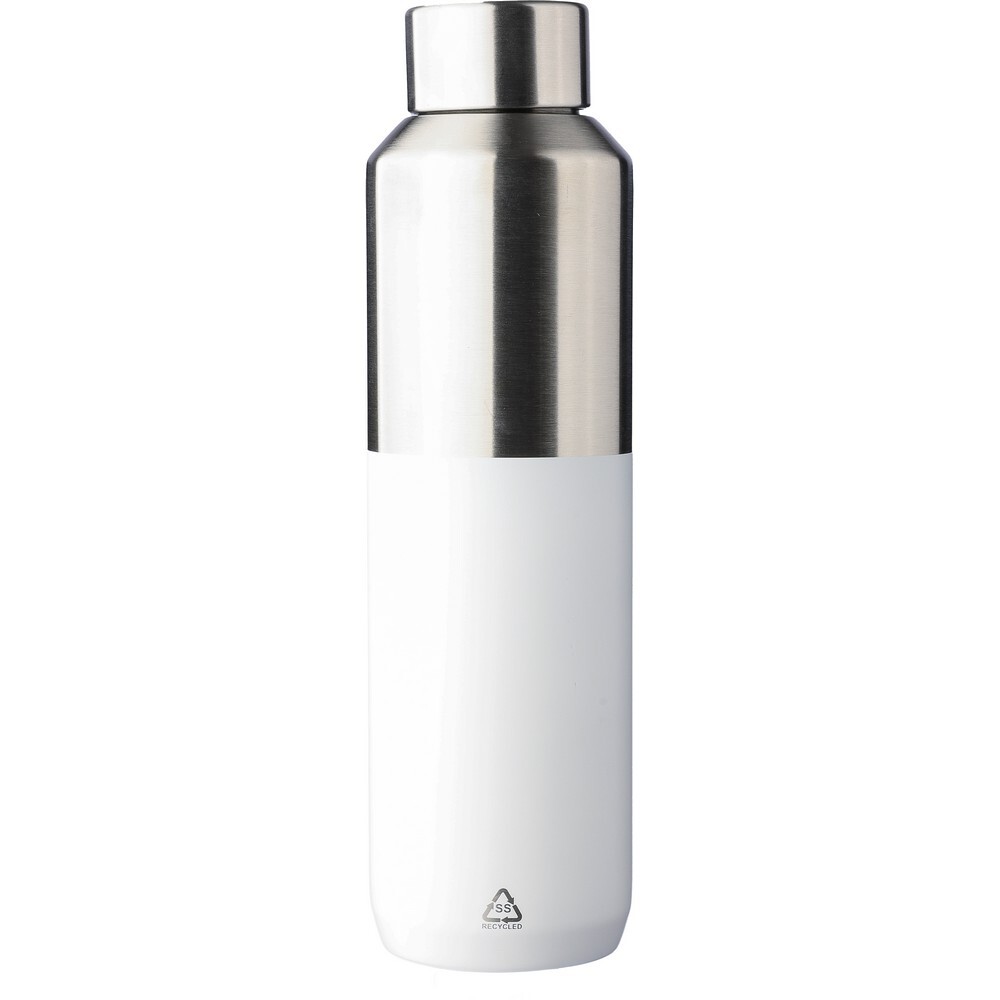 Butelka termiczna 600 ml ze stali nierdzewnej z nakrętką z PP, podwójne ścianki ze stali nierdzewnej z próżnią między ściankami dzięki czemu zachowuje funkcje termosu i długo utrzymuje temperaturę, nie oddając jej na zewnątrz, zewnętrzna część wykonana jest ze stali nierdzewnej 201, a wewnętrzna ścianka ze stali nierdzewnej 304, ikona recyklingu na produkcie, zapakowana w brązowe kartonowe pudełko
