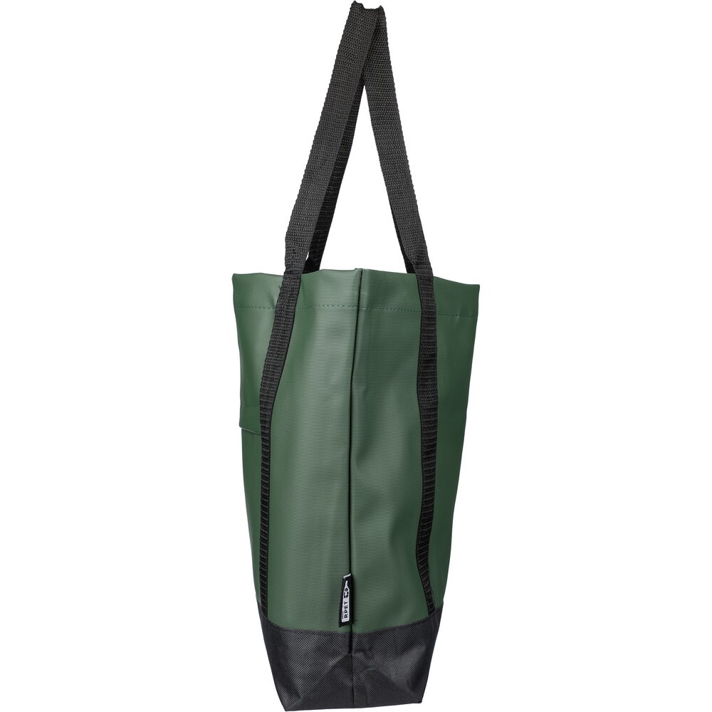 Torba na zakupy z dwustronną powłoką zapewniającą wodoodporność, pojemność: 10 l, udźwig: 10 kg, długie uchwyty ułatwiające noszenie, dwie zapinane kieszenie, kieszeń wewnętrzna, ikona RPET na metce, produkt wykonany z RPET