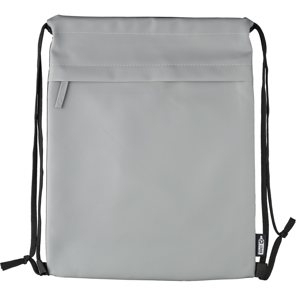 Worek ze sznurkiem, zapinana kieszeń z przodu, wewnętrzne kieszenie w komorze głównej, pojemność: 8 l, udźwig: 8 kg, wodoodporna powłoka z PU, ikona RPET na metce, produkt wykonany z RPET