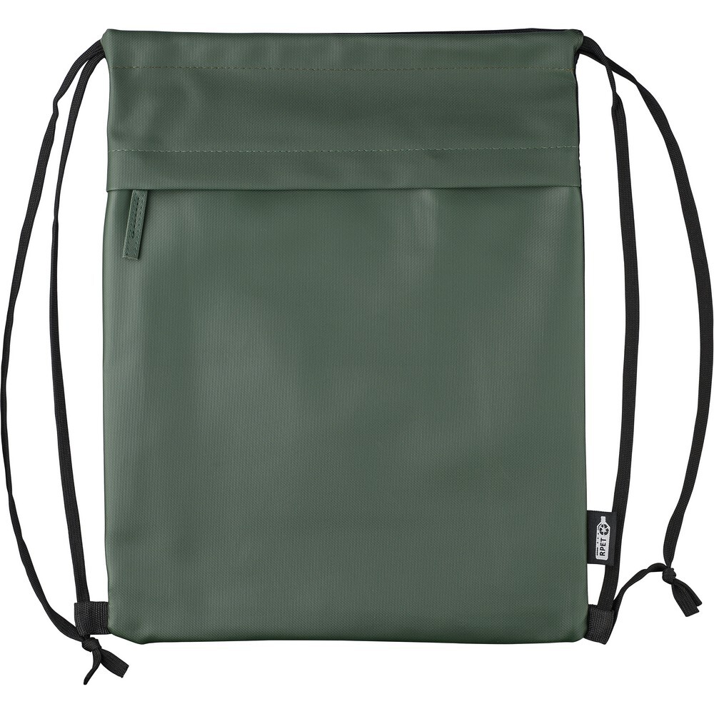 Worek ze sznurkiem, zapinana kieszeń z przodu, wewnętrzne kieszenie w komorze głównej, pojemność: 8 l, udźwig: 8 kg, wodoodporna powłoka z PU, ikona RPET na metce, produkt wykonany z RPET