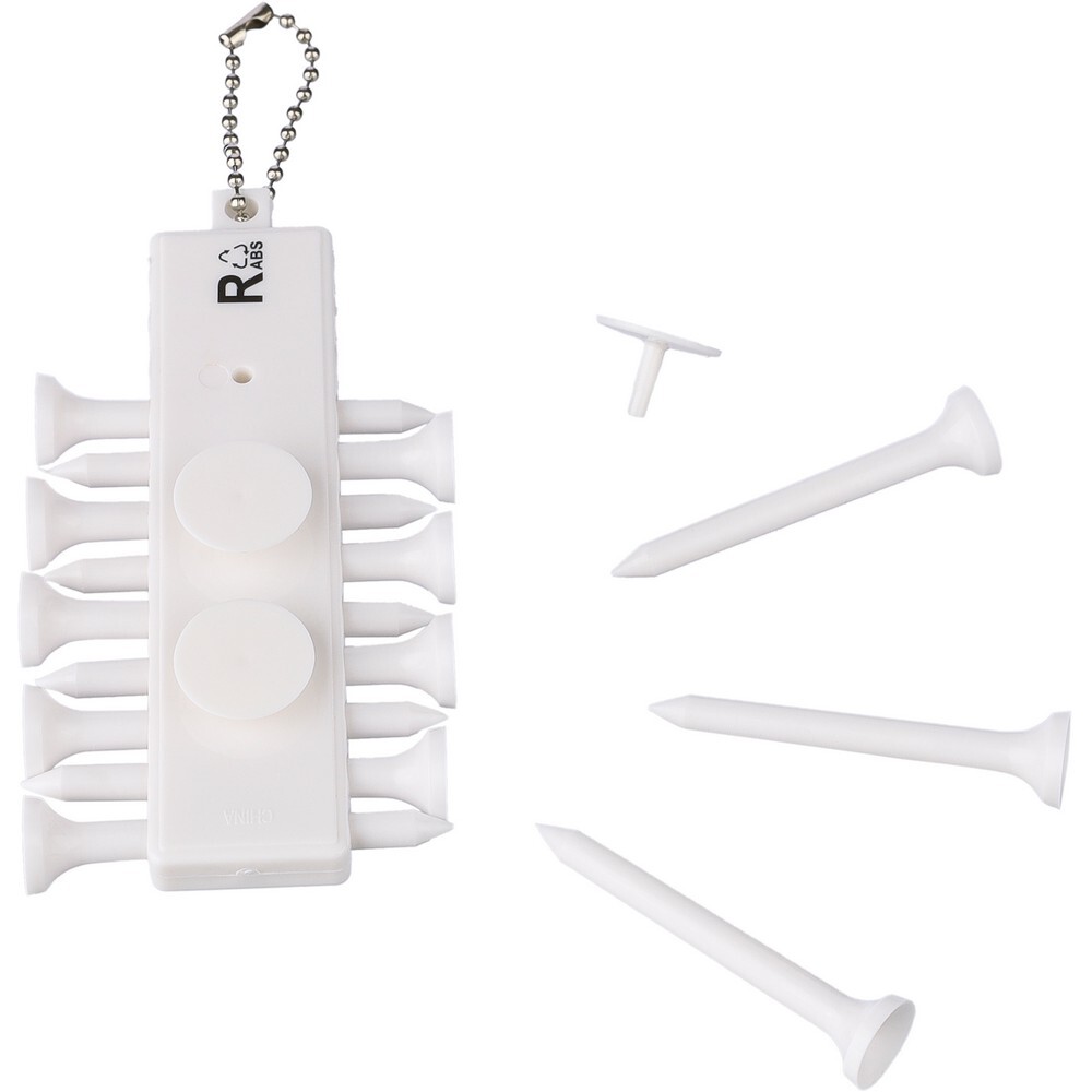 Zestaw 12 kołków do golfa w kompaktowym pojemniku, sznurek do przymocowania, 3 znaczniki z tyłu, ikona ABS na produkcie, produkt wykonany z ABS