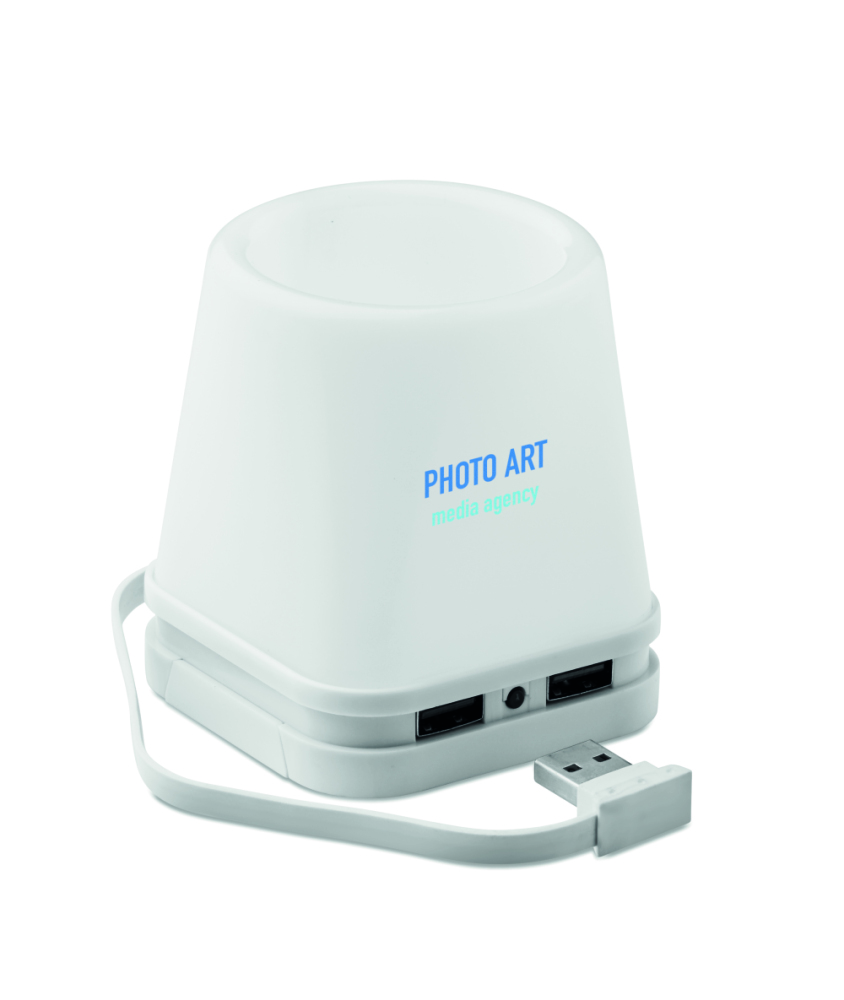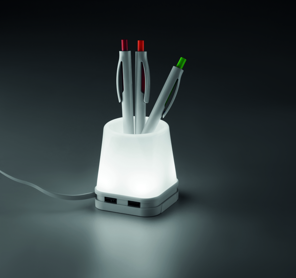 Pojemnik na długopisy - hub 4 USB. Posiada wbudowaną lampkę z 2 trybami świecenia.