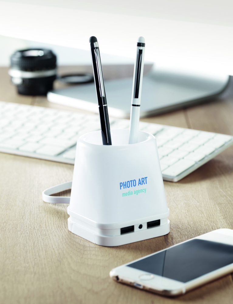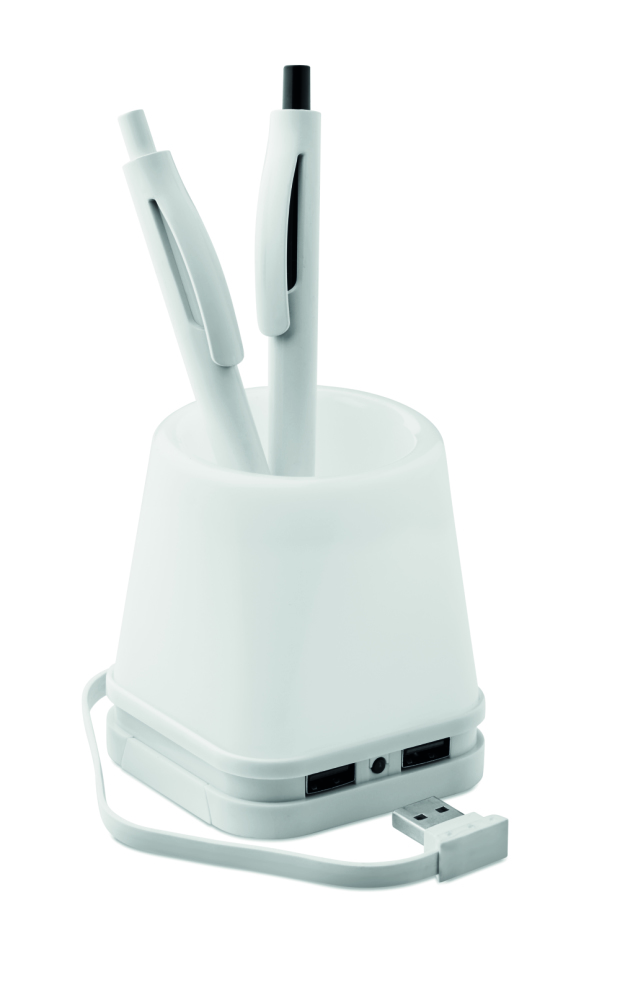 Hub USB-pojemnik na długopisy / Biały