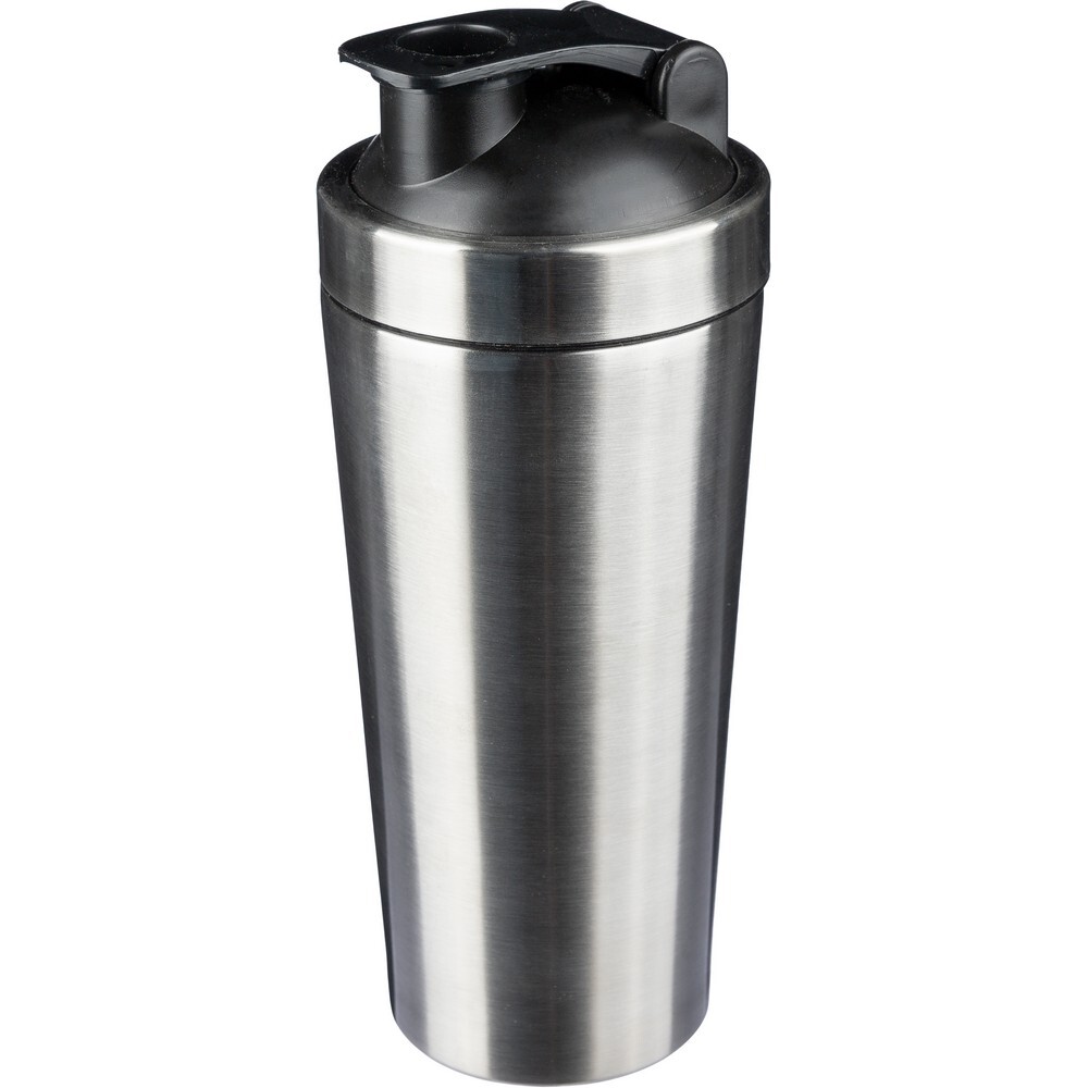 Butelka sportowa 750 ml z pojedynczą ścianką ze stali nierdzewnej 304, shaker, zakręcane wieczko, metalowa kulka ułatwiająca mieszanie składników, ikona recyklingu na produkcie, zapakowana w kartonik kraftowy