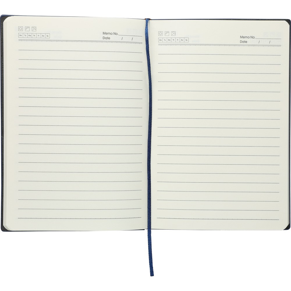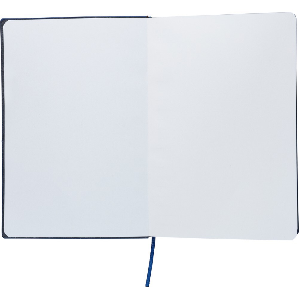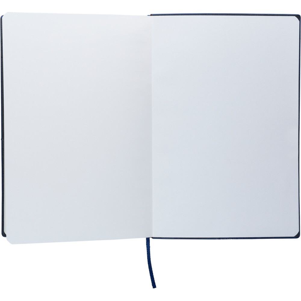Notatnik ok. A5, 100 stron w linię (80 g/m²), twarda okładka, tasiemka zakładkowa umożliwia wygodne zaznaczanie ostatniej strony lub ważniejszych notatek, wykończenie przypominające sztruks, ikona recyklingu na produkcie, produkt wykonany z PU