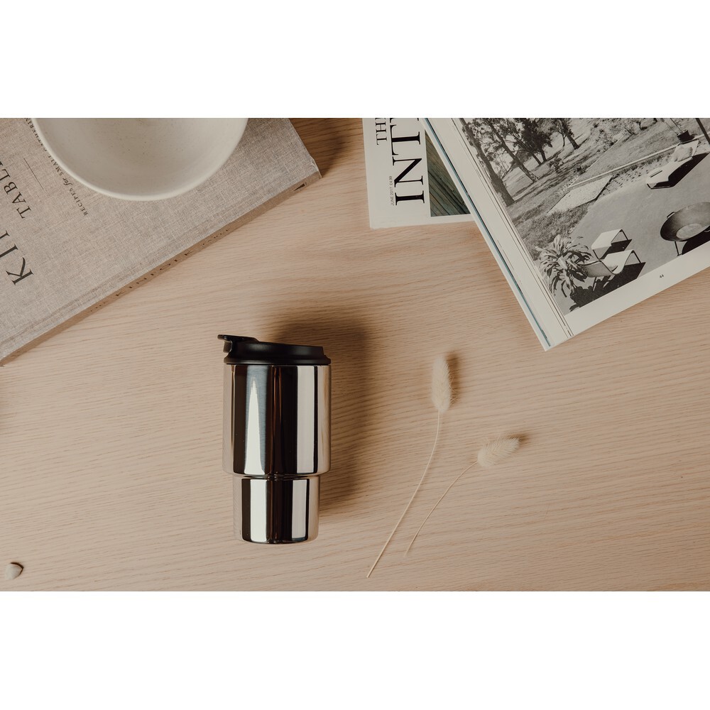 Kubek podróżny 350 ml, zamykane wieczko, utrzymuję temperaturę napojów gorących do 4 godzin i zimnych do 12 godzin, wyłącznie mycie ręczne, całkowita zawartość materiałów z recyklingu obliczona na podstawie wagi całkowitej przedmiotu: 30%