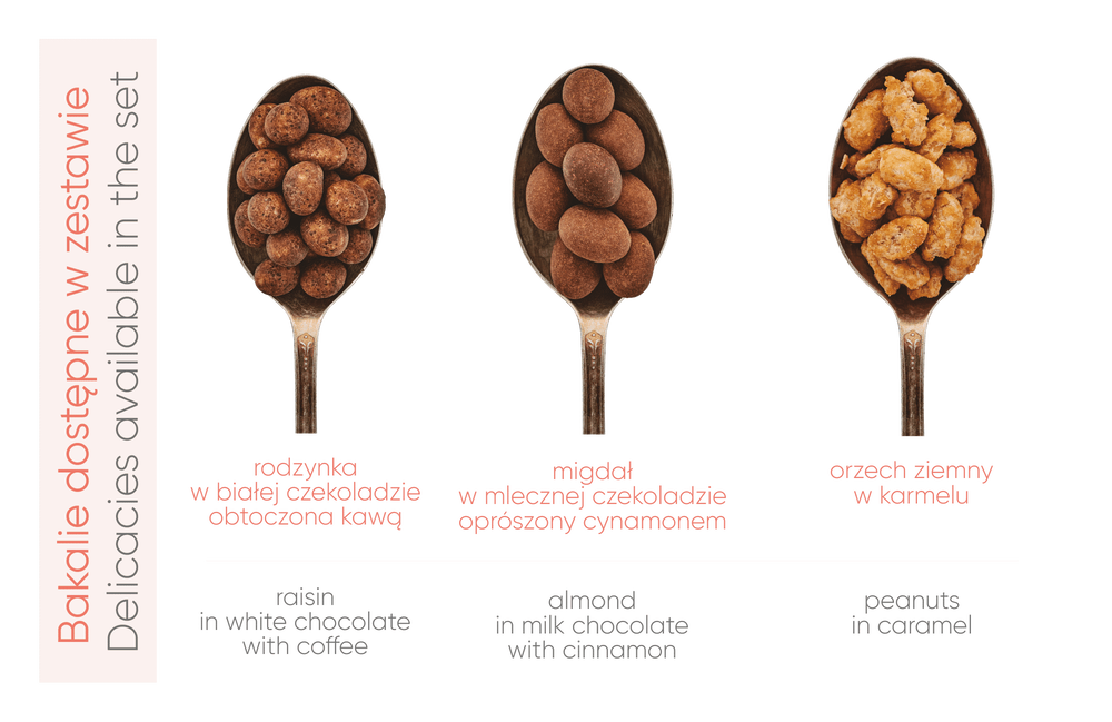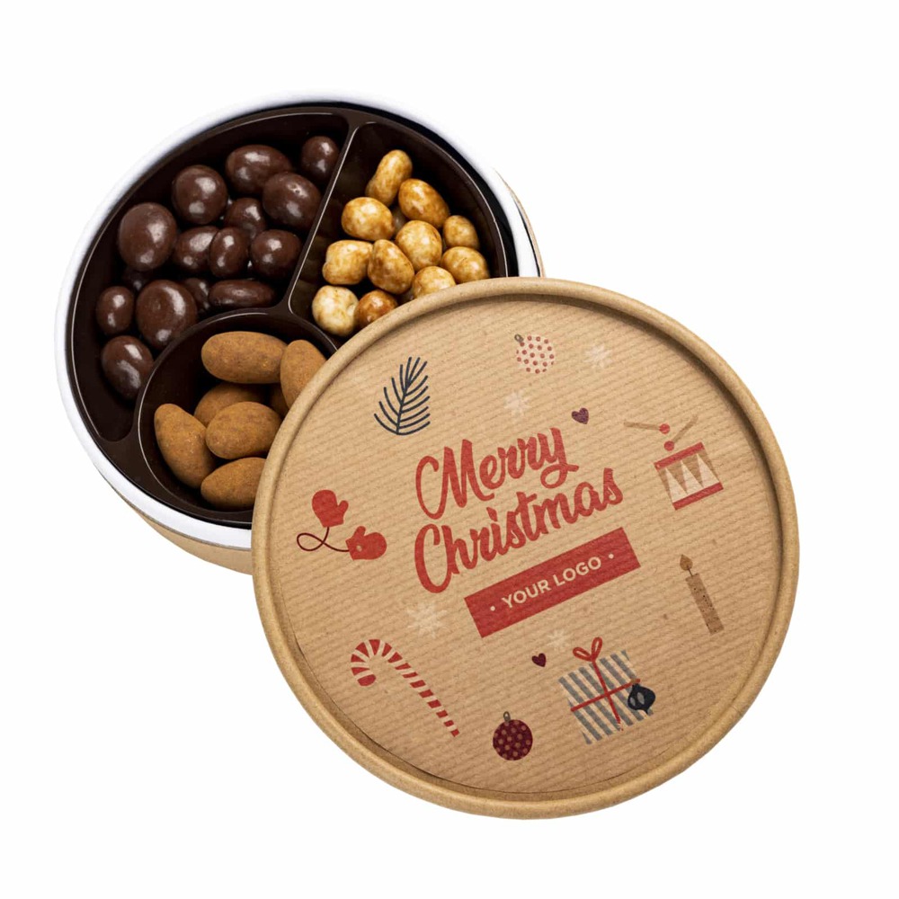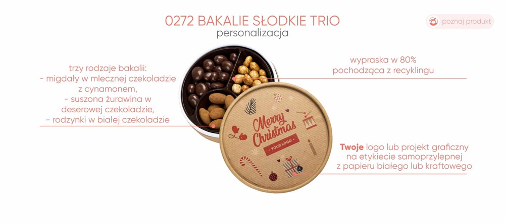 Chcesz podarować klientom prezent, który wyróżni się spośród innych? Tym, co od razu możemy Ci polecić, jest Słodkie Trio! Elegancka, kraftowa tuba, a w niej aż trzy rodzaje bakalii w różnych wariantach smakowych: