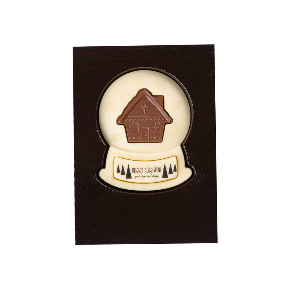 Wzbogać świąteczne akcje marketingowe i prezenty dla kluczowych klientów z Czekoladowym Kształtem Bożonarodzeniowa Kula Śnieżna PRINT. Ta elegancka czekolada łączy doskonały smak i efektywną promocję, oferując personalizowany nadruk na białej lub mlecznej czekoladzie, który wyróżnia markę w okresie świątecznym.